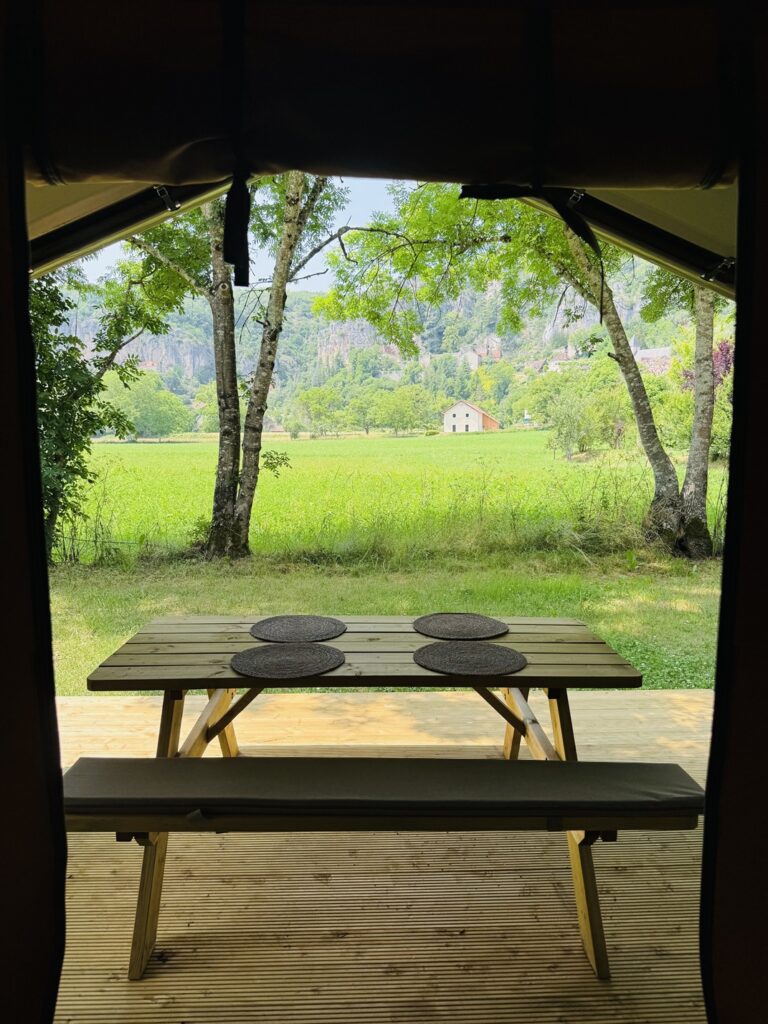 Unser neues Safarizelt ist ein echtes Schmuckstück im wunderschönen Tal der Célé. Genießen Sie den Panoramablick auf das Tal, die Felsformationen und den Fluss Célé, wo Sie die beruhigenden Geräusche des Wassers hören und sich herrlich erfrischen können. Camping Le Célé ist ein gemütlicher kleiner Familiencampingplatz. Perfekt für einen entspannten Aufenthalt im Herzen der Natur. Die Sanitärgebäude befinden sich in unmittelbarer Nähe.